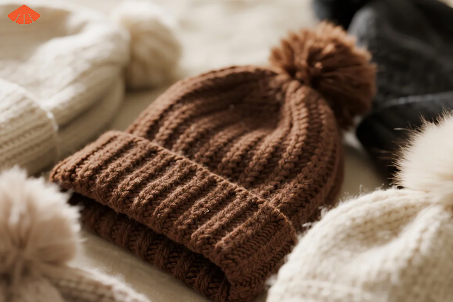 Side embroidery conveys restraint and modern taste. It allows the beanie’s texture, yarn quality, and pom-pom detail to remain the hero. Many lifestyle brands prefer this approach when designing minimalist winter collections, particularly for the cozythickcableknitcuffedfauxfurpompombeaniehat category.