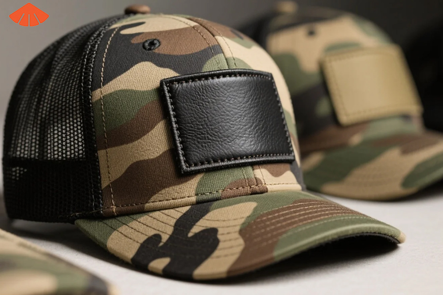 🎯 If you're going custom, go all the way. Hats like the hunt camouflage cam printed leather patch trucker hat deserve to be more than just branded—they should feel curated.