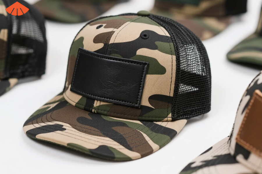 Whether it’s initials, team names, or a motto, embroidery connects emotionally. Leather patches offer the perfect canvas for raised stitching that feels premium and looks bold—especially on textured hunt camouflage cam printed leather patch trucker hats.